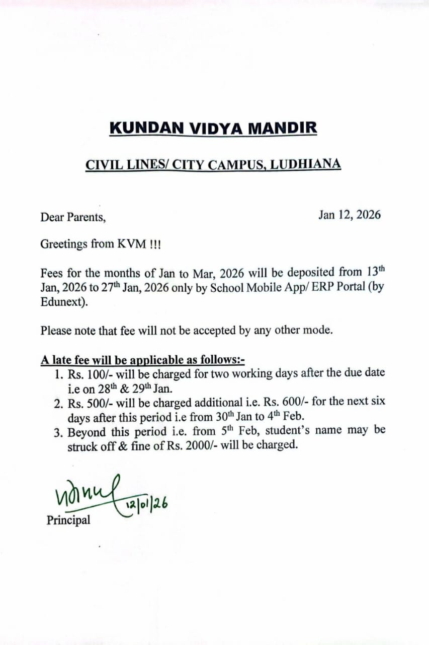 Fees Notice January - March, 2026